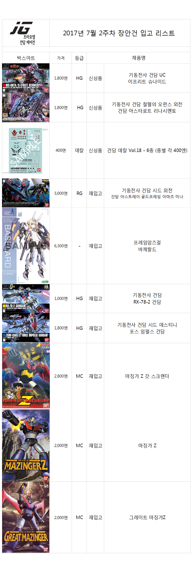 장안건 입고안내 – 2017년 7월 2주차