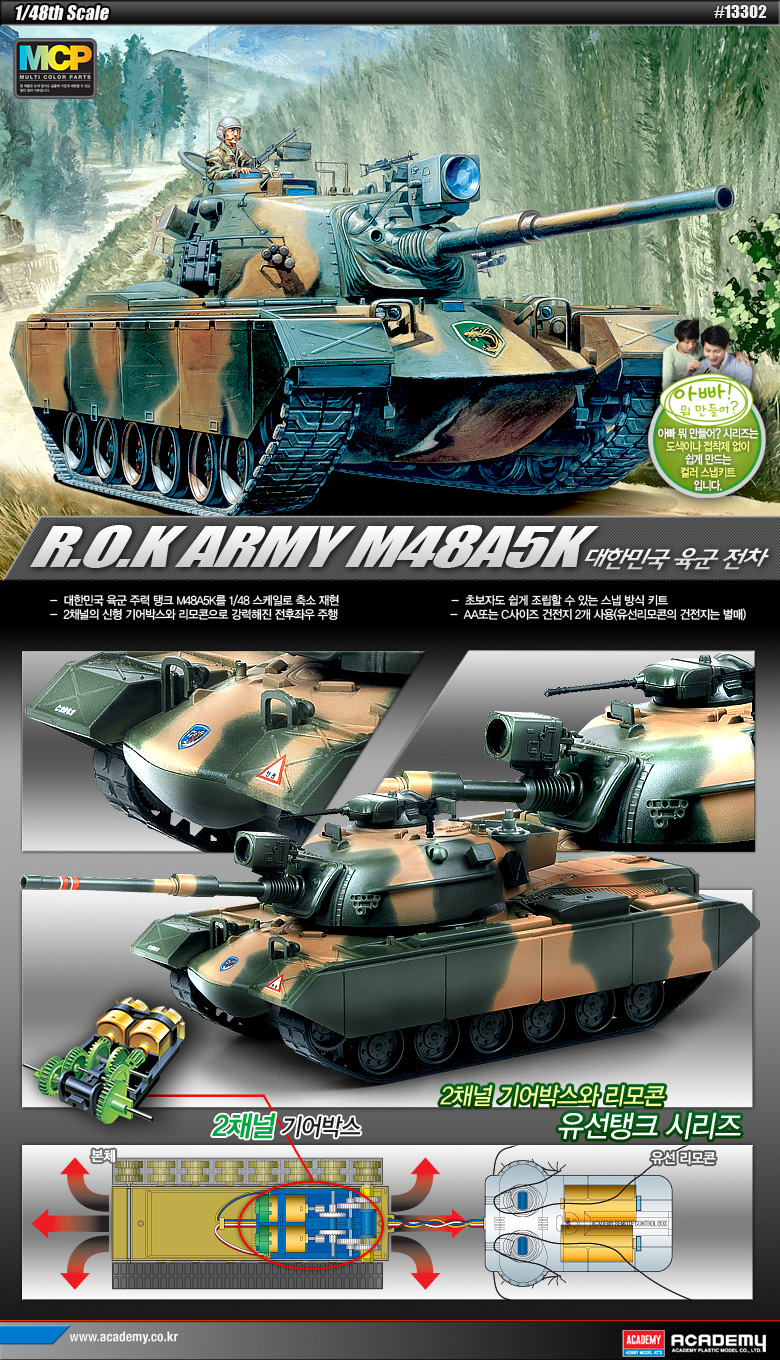 1/48 대한민국 육군 전차 M48A5K – 2채널 리모콘 – Multi Color Parts