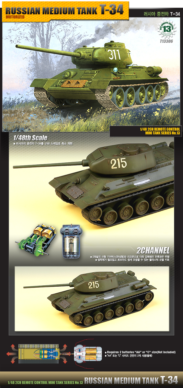 1/48 러시아 중전차 T-34 – 2채널 리모콘