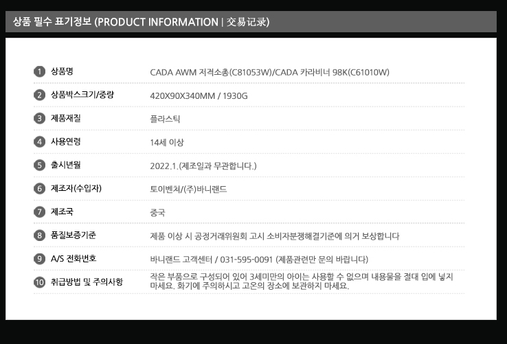 제조사 : toy venture 사용연령 : 14세 안전인증번호:CB067R227-0024